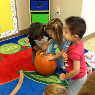 We made a "What's Inside a Pumpkin?" activity. We glued pumpkin seeds and string on the inside of a pumpkin