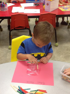 Building houses with popsicle sticks!